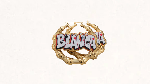 Gorgeousness Bamboo Hoop Earrings – Graffiti Statement Name Hoops – Gold Bamboo Festival Earrings – Trendy Custom Hip Hop Jewelry